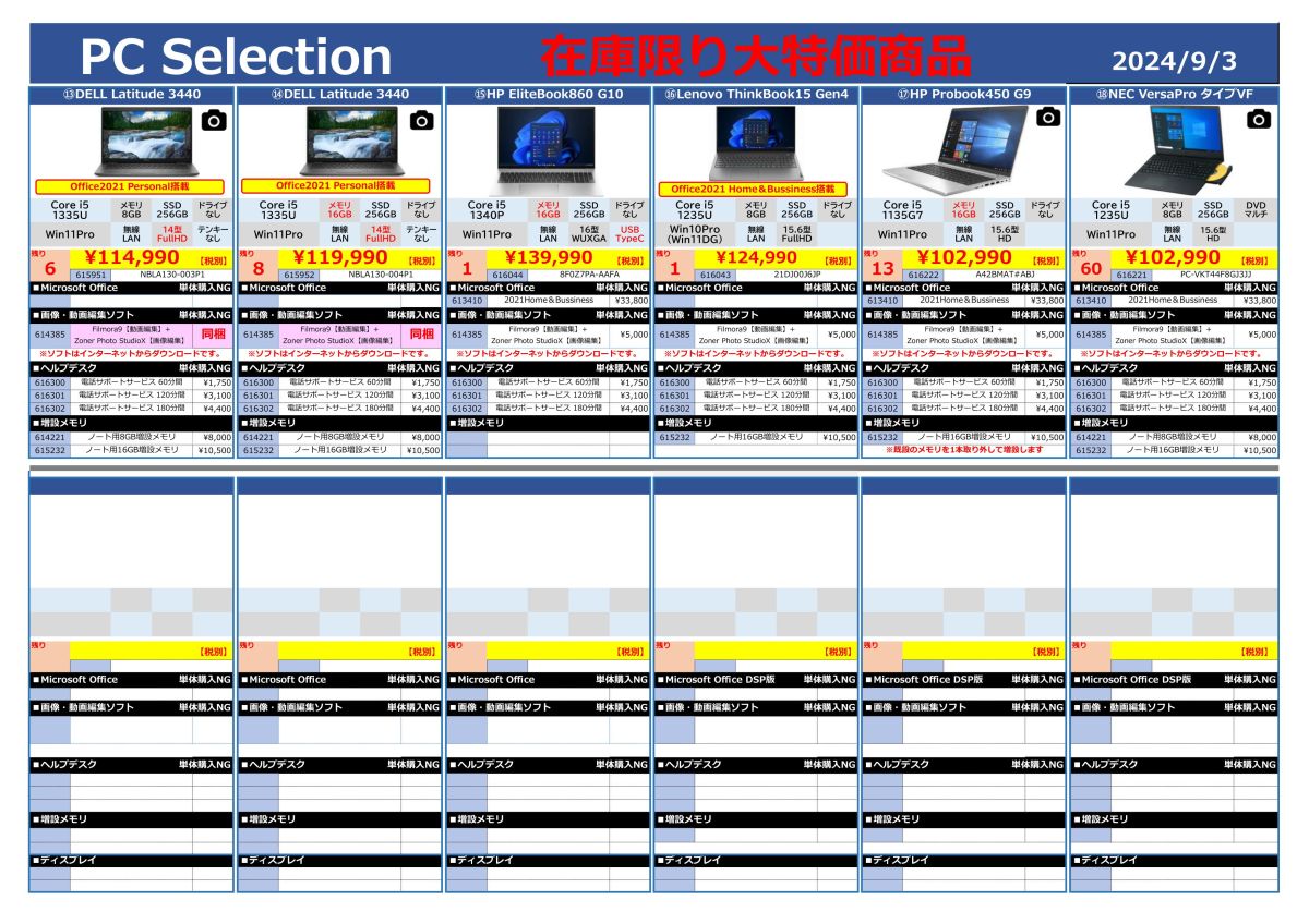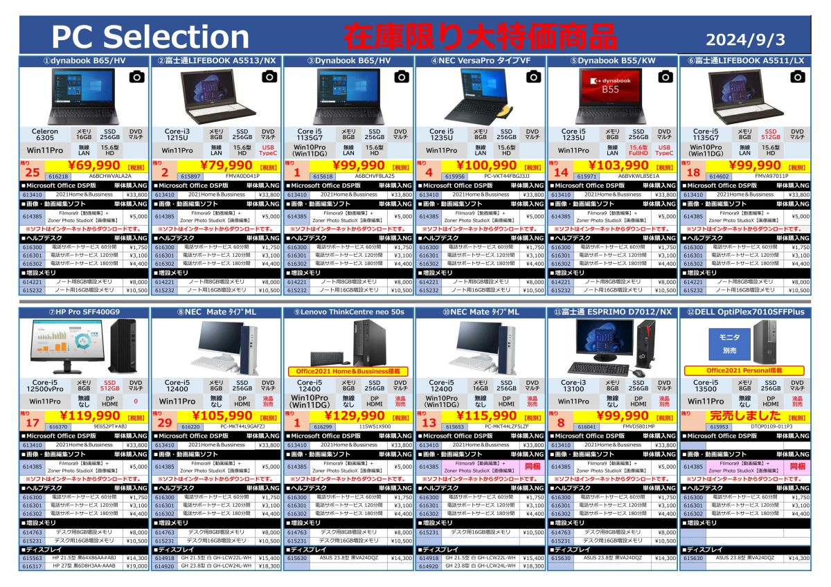 在庫限りの大特価PC