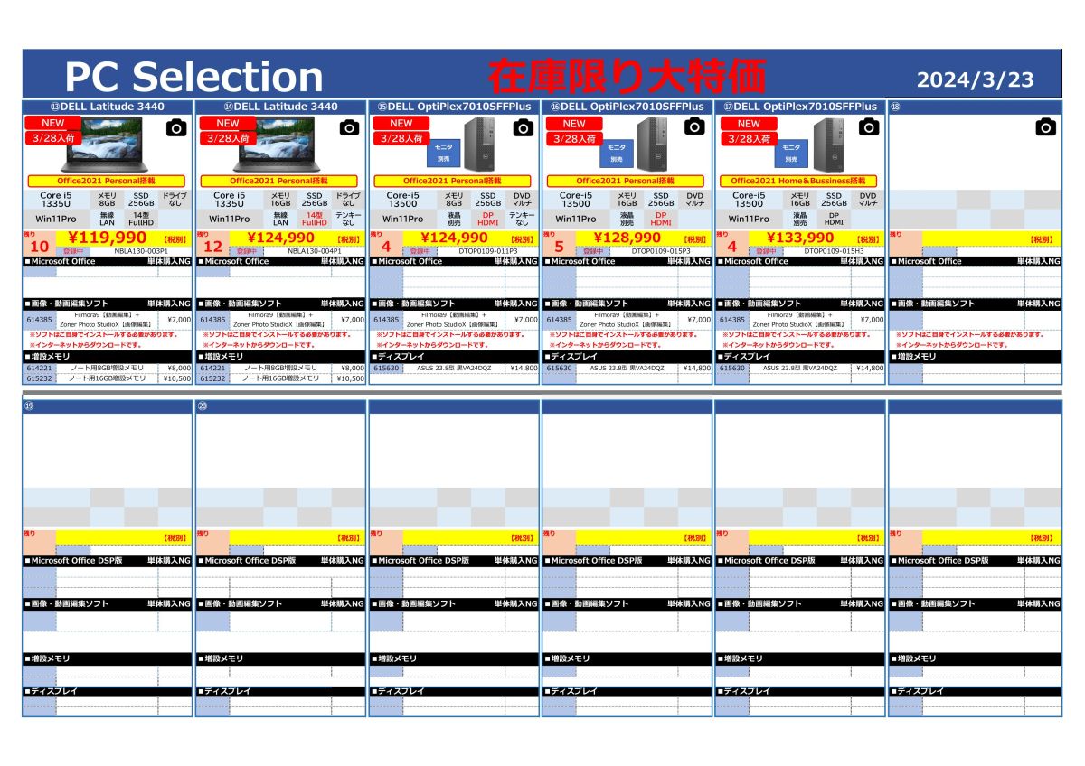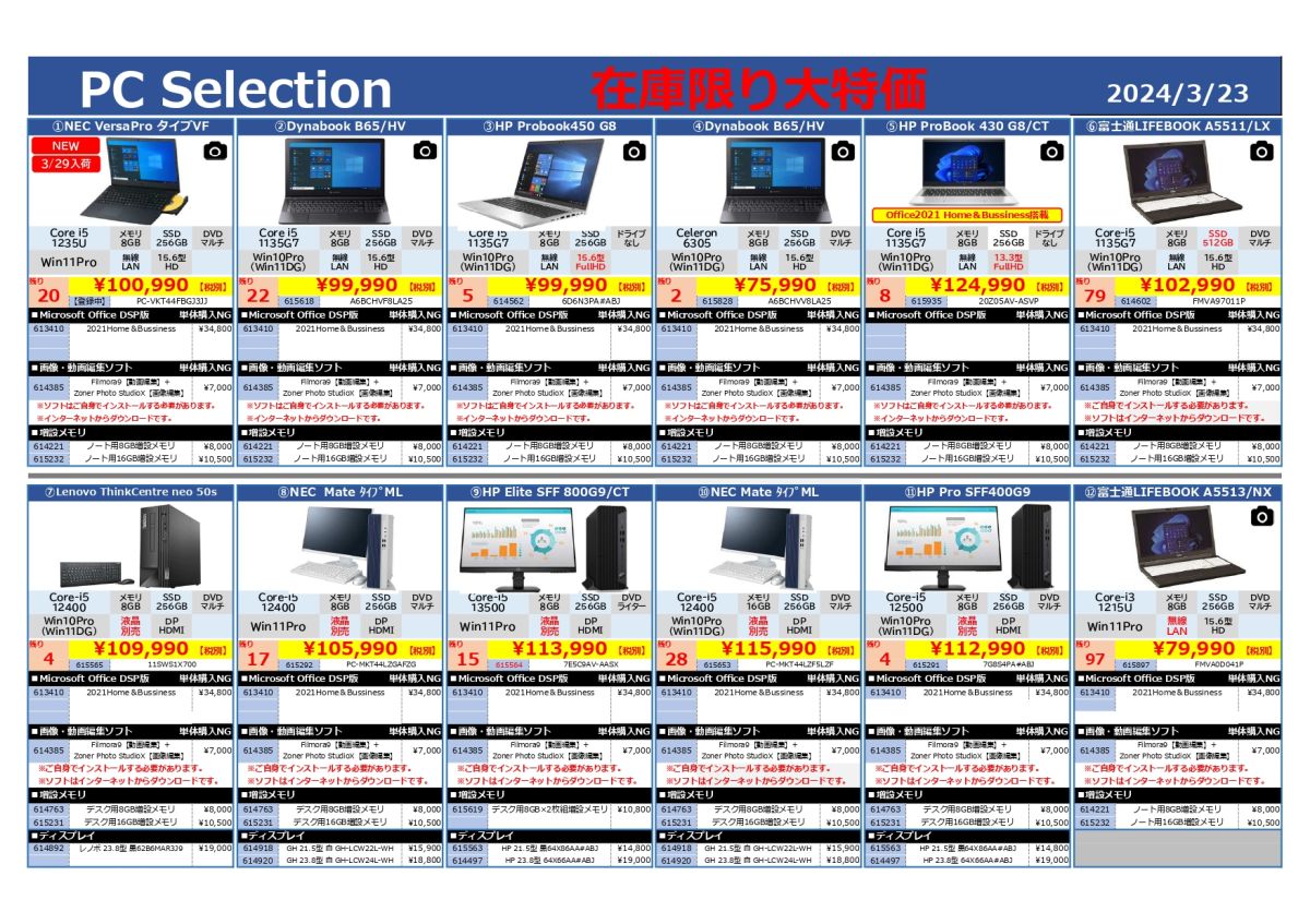在庫限りの大特価PC