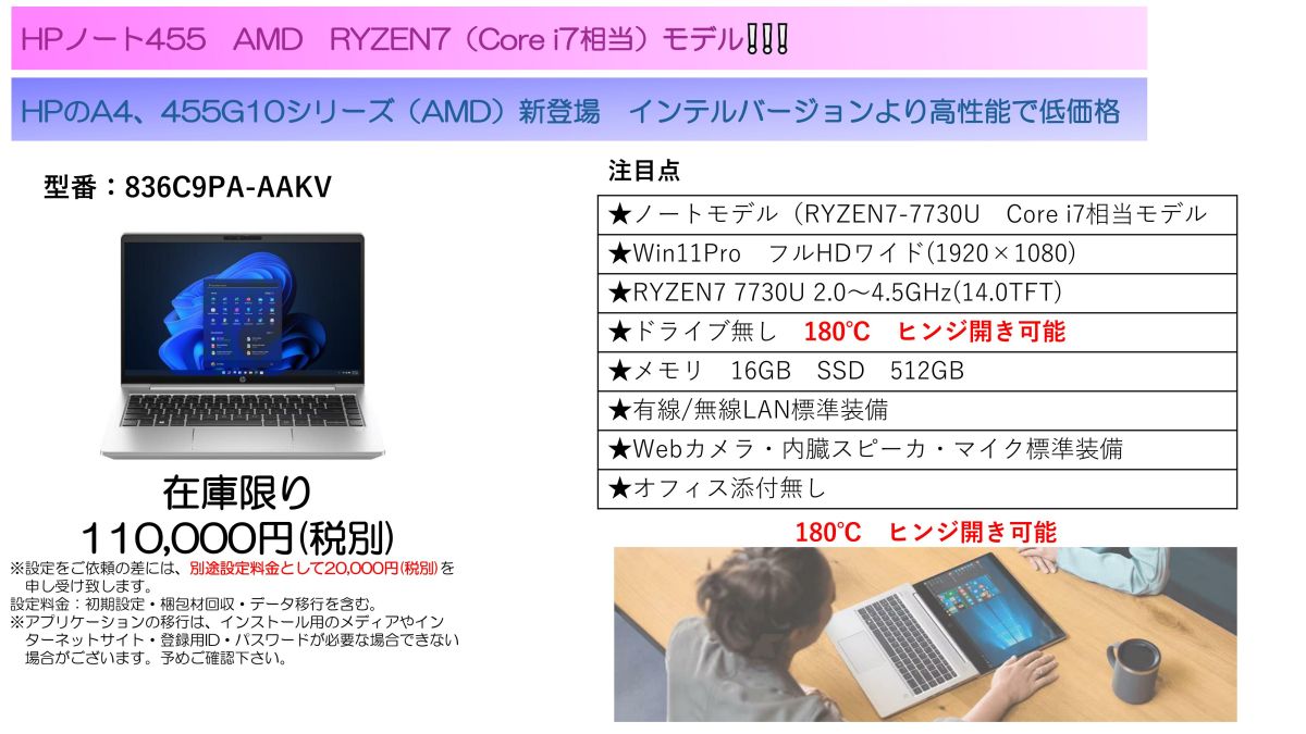 RYZEN7搭載。メモリ16GB SSD512GB オフィス添付無し となります。